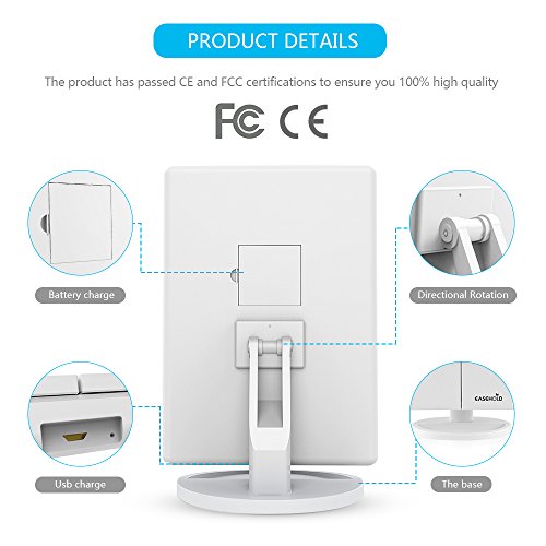 Countertop Vanity Mirror: This mirror stands stably by itself on your dresser and can be 180° freely adjusted and fixed ensuring a perfect and comfortable viewing angle. And the Base Recess can hold jewelry or cosmetics like watch, earrings, bracelets, etc. Perfect gift for ladies and girls.