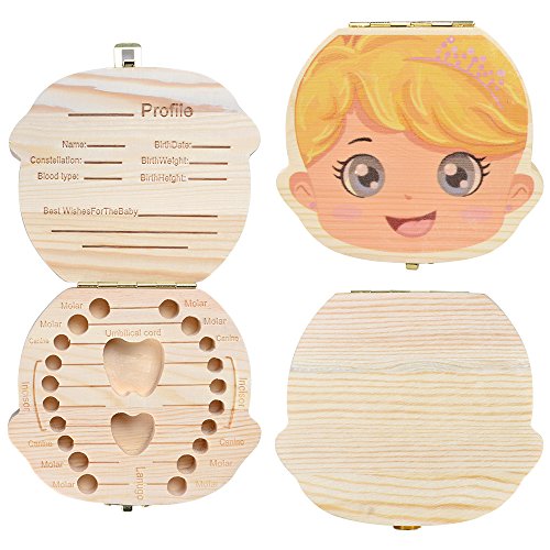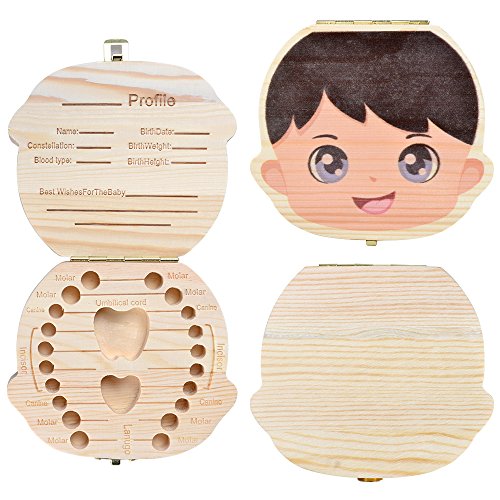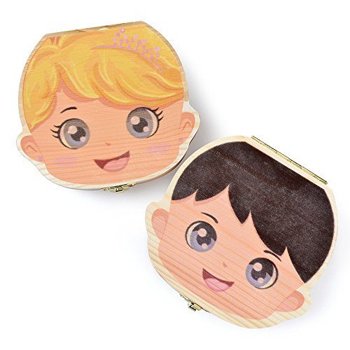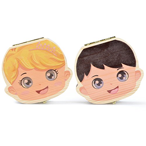 Eteng Colorized Baby Tooth Storage Box Wood Case Milk Teeth Saver Organizer for kids Boy & Girl (Boy&Girl)