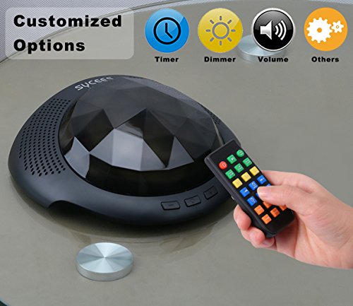 [ Remote for Customized Options ] -- You can make adjustments via the remote control up to 10 feet away: 1, 2 and 4 hours auto-off timers or continuous play; 30-levels volume control; 3-levels brightness; 7 lighting modes and more options