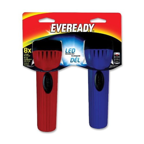 Product Description Great choice for an all purpose light, the Eveready LED Economy1D Battery flashlight two pack. Position them where you may need assistance with a durable light. Made in the USA. 0