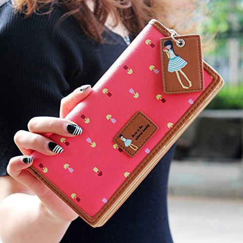DZT1968(TM)Women PU Leather Long Purse Clutch Zip Bag Card Holder Wallet With Button (Watermelon red)