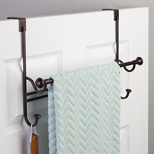 MDESIGN BATHROOM OVER SHOWER DOOR TOWEL BAR RACK WITH HOOKS - BRONZE