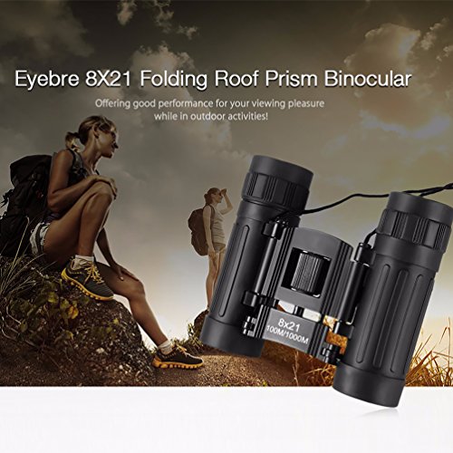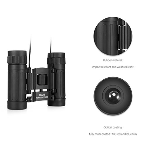 runacc 8?x 21?Mini콤팩트 접이식식 쌍안경Binoculars포터블 쌍안 망원경,최적인 용도 어른,아이,블랙