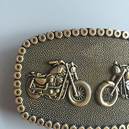 Binding : Apparel Product Description 2016 JEAN'S FRIEND Original Heavy Metal Motorcycle Chain Biker Rider Belt Buckle Gurtelschnalle Boucle de ceinture Brand New In Stock Only Buckle No Stand No Belt SKU: BUCKLE-AT073AB Material: Zinc Alloy Heavy Metal Vintage Brushed Bronze Plated Color Ship to worldwide Both Safe Material and Plating by Lead Free Nickle Free Length Size is, 3.27 inches, Height Size is, 2.17 inches, Weight is 3.82 oz Length Size is, 83 mm, Height Size is, 55 mm, Weight is 80 g The inner diameter for back loop is, 1.58 inches (40 mm), fits belt up to 1.58 inches (40 mm) Width Button Snap On Belts All of our buckles is fitting to all of our Button Snap on Belts you could please choose your favorite belt in our store 0