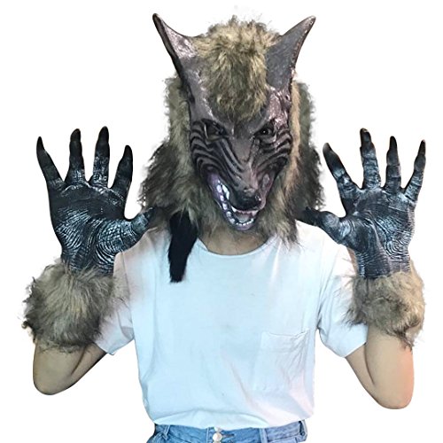 -. Title : Multifit Adults Latex Wolf Gloves and Wolf Head Mask for Halloween Themed Party