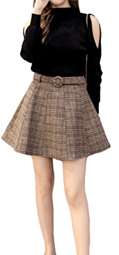 -. Title : ELPIS レディース ボトムス スカート チェックスカート かわいい ベルト付き チェック ミニスカート 秋服 冬服 女の子 女子会 フレア ブラウン グレー S M L XL