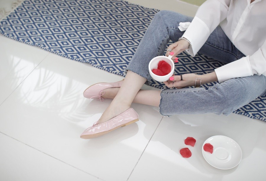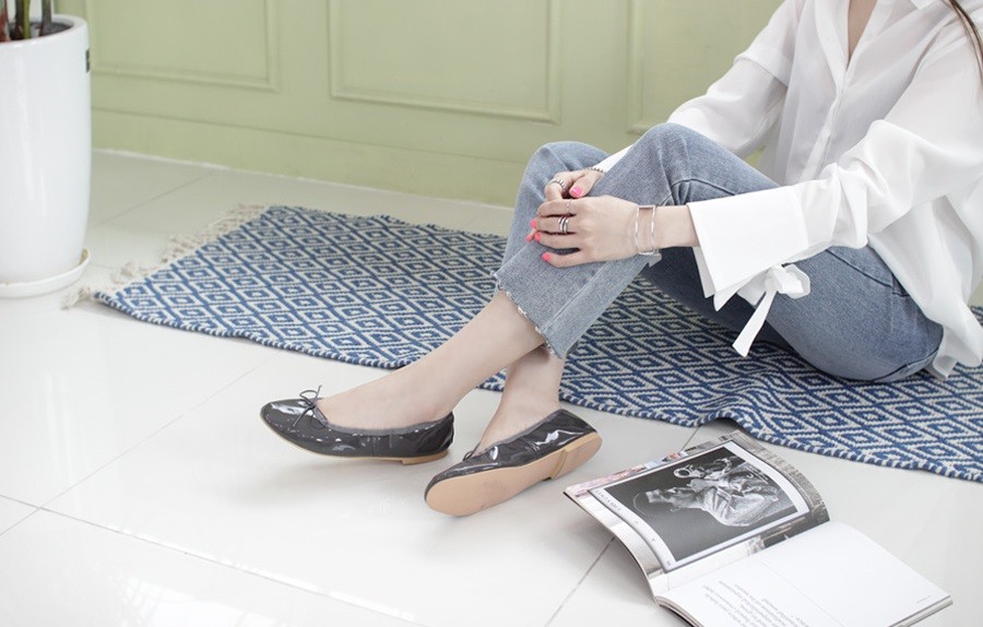 シンプルなデザインに優しい色味はパンツにもスカートに
