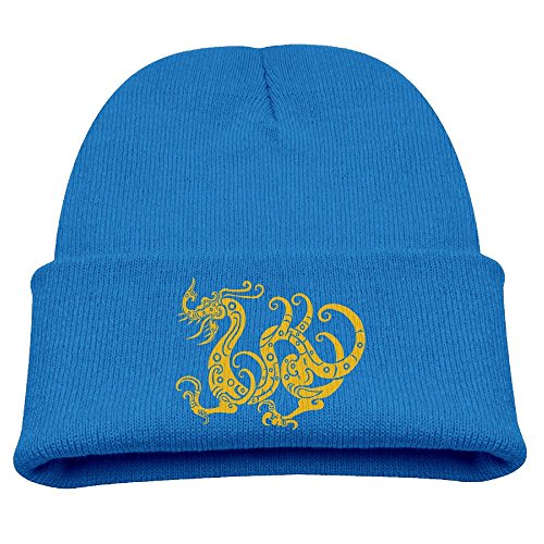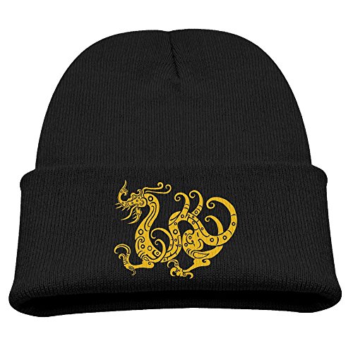 (Blacksin)/Accessories/Hats/DIRECT FROM USA/Blacksin Vector Yellow Dragon Pattern Child Elastic Knitted Beanie Cap Cotton Hat
