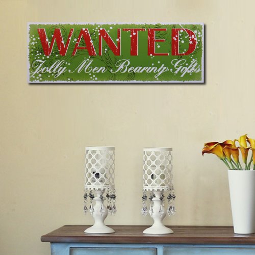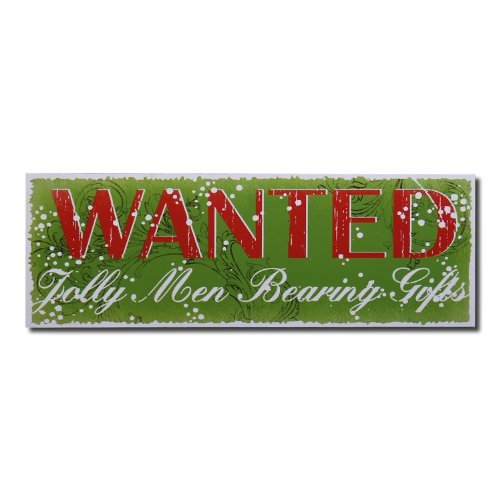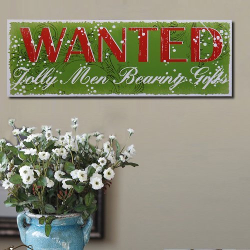 Adeco Decorative Wood Wall Hanging Sign Plaque, Christmas "Wanted: Jolly Men Bearing Gifts", Green Red Home Decor - 15.75x5.31 Inches