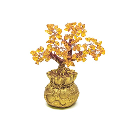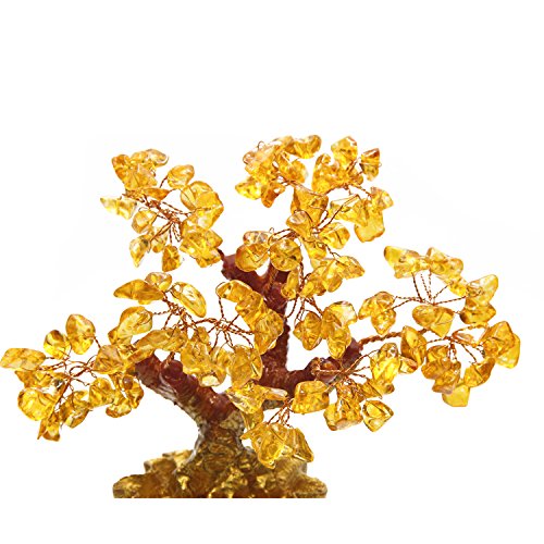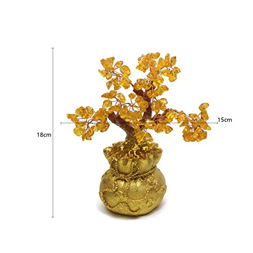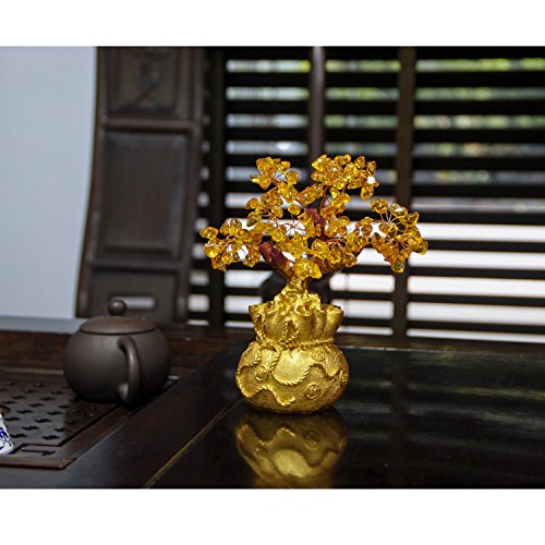 EDOBLUE Feng Shui Pale Gold Crystal Money Tree Bonsai Style Decoration for Wealth and Luck