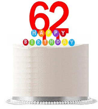 Item#062WCD - Happy 62nd Birthday Party Red Cake Topper & Rainbow Candle Stand Elegant Cake Decoration Topper Kit
