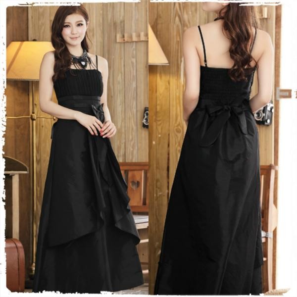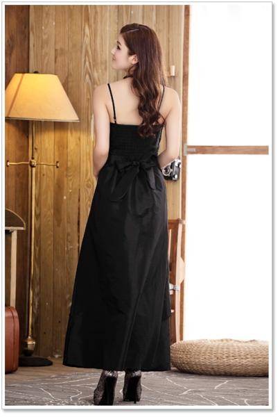 エレガント ウエストリボンマキシパーティドレスワンピース