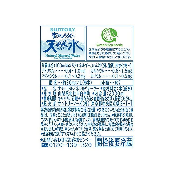 원본상품명: [2CS] サントリ? 天然水(南アルプス) (2L×6本)×2箱