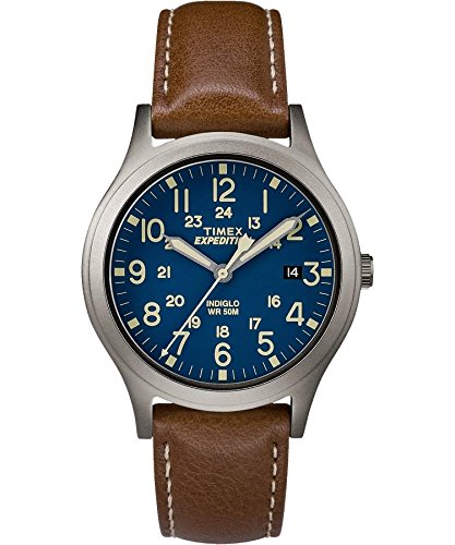 A mid-size update to our well-crafted field watch, this 36mm Scout design gives you rugged metal construction, a rich brown leather strap, twelve or twenty-four hour military time markings and our signature arrow second hand.Feature