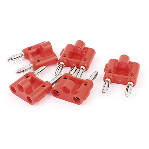 uxcell 5pcs Red 4mm Wire Dual Port Banana Male Connector Audio Jack for Speaker