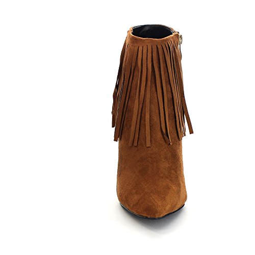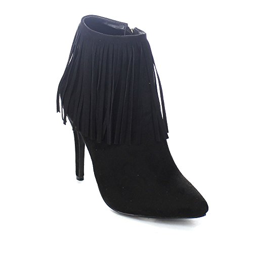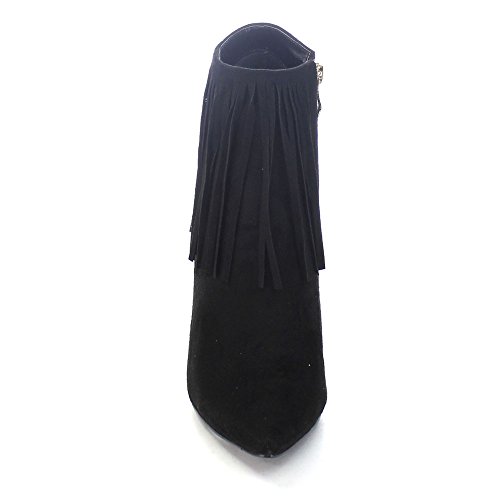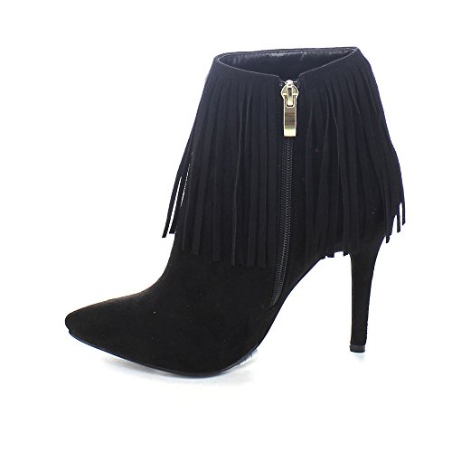 Product Description Smooth faux suede upper with tassel trimming deco at ankle. Featuring sexy pointed heel, a lightly cushioned footbed, traction outsole. The real side zipper is easy for wear on/off. It¡?s good for wearing any outfit. 0