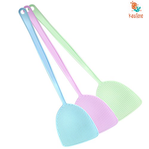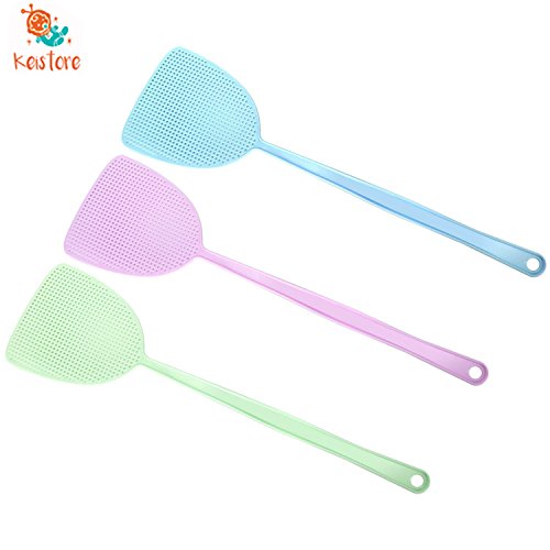Keistore Fly Swatter Pest Control 3 pack Manual Plastic 17.5' Durable Long Handle Sweet Color