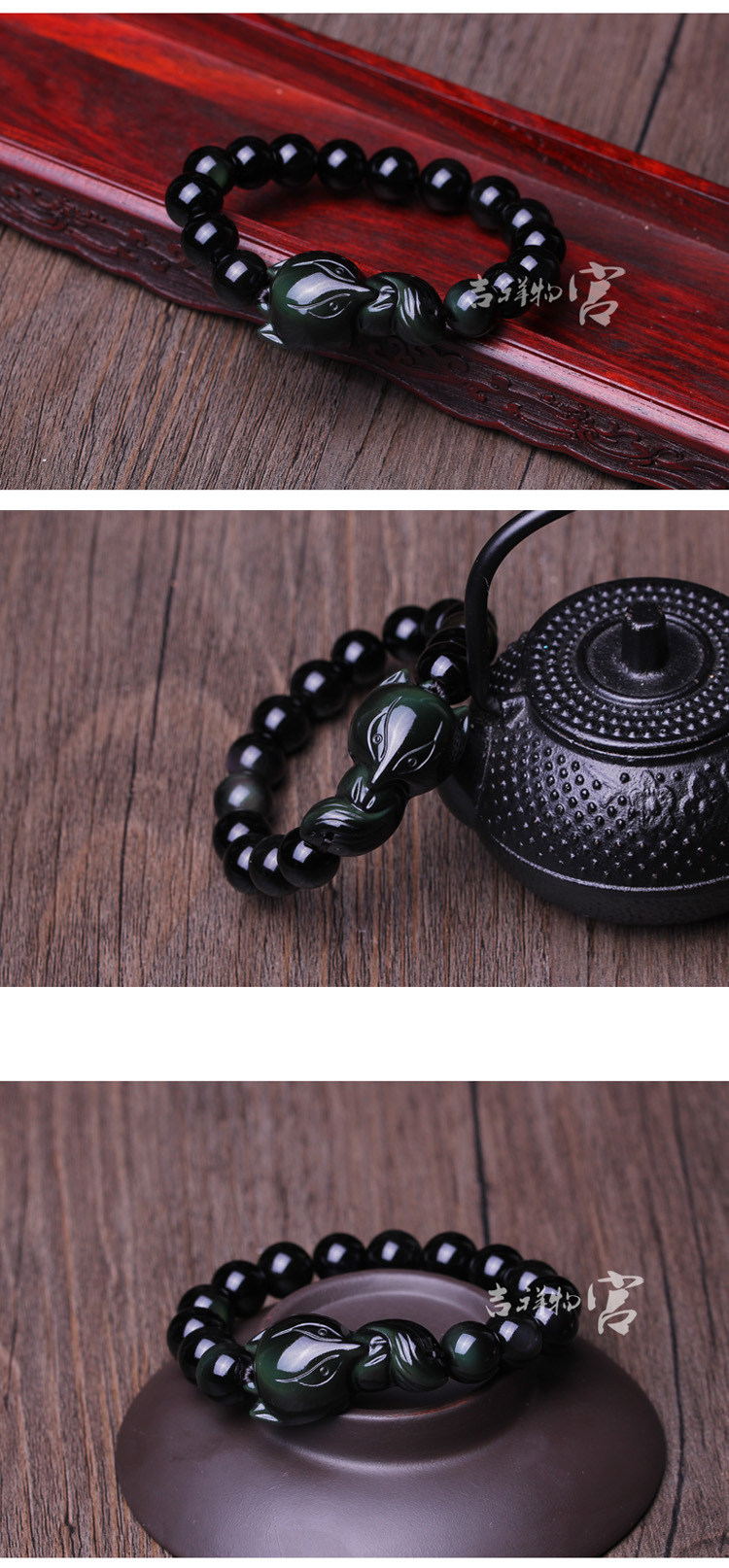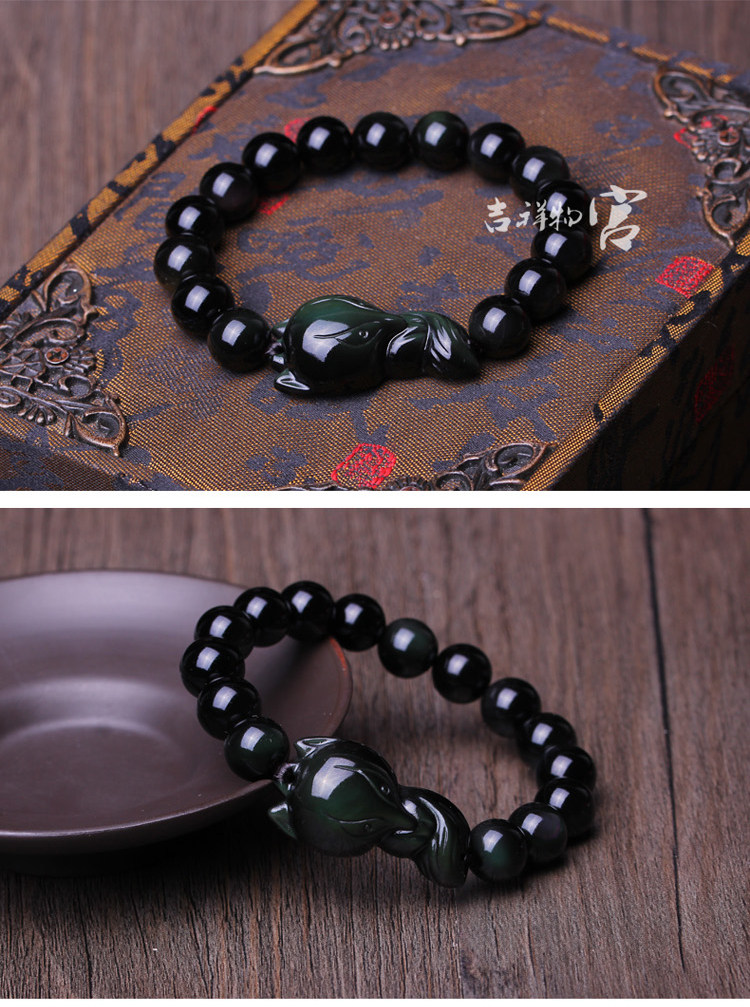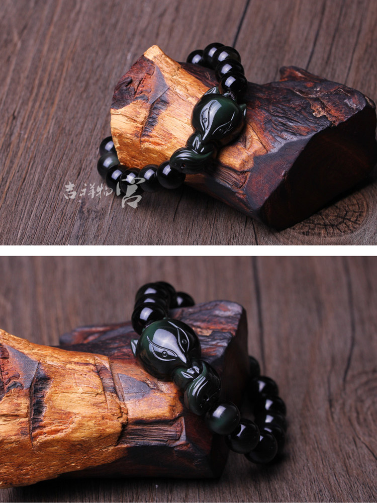 黑狐手链 男女款黑曜石狐狸增合灵狐 增缘黑狐手链开光吉祥物