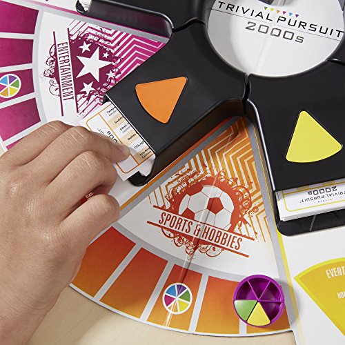 -. Feature : Players prove their knowledge of the 2000s / Updated way to play the Trivial Pursuit game / Includes 1800 questions from 6 categories -- something for everyone / Now players can answer the question or try to stump their opponents / 300 trivia cards totaling 1800 questions from the 2000s / Includes gameboard, 300 cards (50 of each category), cardholder, 6 wedge holders, 36 wedges, 1 custom die, label sheet, and instructions