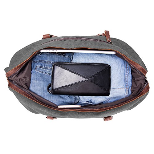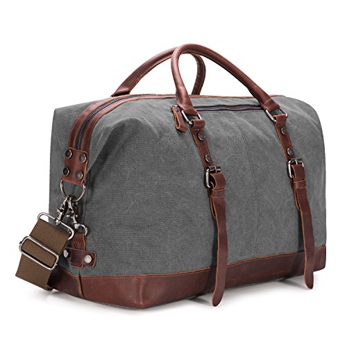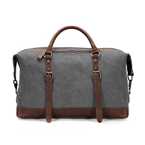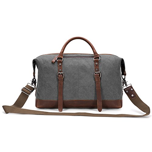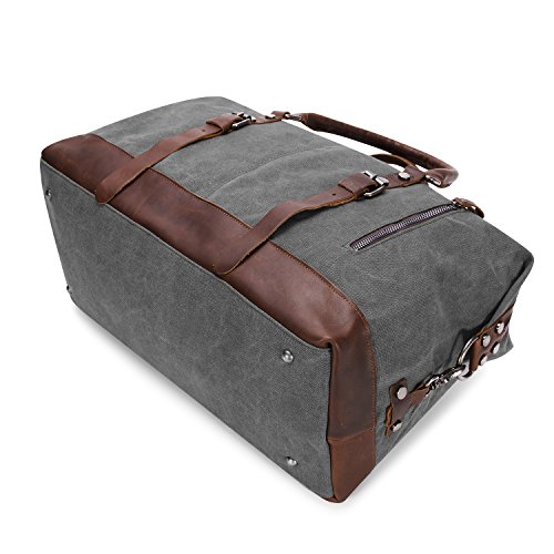 -. Brand : Kattee -. Color : Dark Grey -. Department : mens -. Feature : 100% Brand New & High Density Canvas and High Quality Crazy-Horse Real Cow Leather / Top zip closure, you can adjust the bag size to the top zipper side according to your objects; Decoration leather patches with buckles and bottom with rivet protective / Interior with main compartment pocket is perfect for holding Mac book Pro, A4 magazine, portable textbooks, 2 zipper pockets, cell phone holder and wallet holder; Front exterior with 1 zipper pocket and 1 on top exterior which provide more function for Storing small stuff / Dual top carry leather handles can be used as tote bag, adjustable and detachable shoulder straps with antique finish silver buckles / This Large capacity duffel bag is used for male or female in daily life, sport and travelling -. Label : Kattee -. Manufacturer : Kattee -. Model : XZ430DG -. MPN : XZ430DG -. PackageQuantity : 1 -. PartNumber : XZ430DG -. ProductGroup : Apparel -. ProductTypeName : LAGE -. Publisher : Kattee -. Size : Large -. Studio : Kattee -. Title : Kattee Genuine Leather Trim Canvas Travel Duffel Bag (Dark Grey, Large)