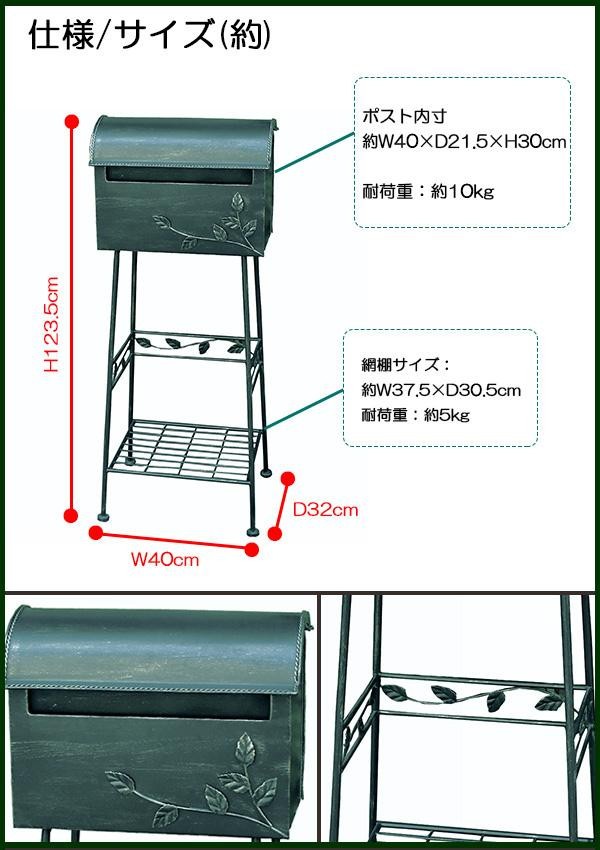 | サイズ | 【外寸】約W40×D32×H123.5cm、【ポスト内寸】約W40×D21.5×H30cm、【網棚】約W37.5×D30.5cm 個装サイズ:45×36×76cm |