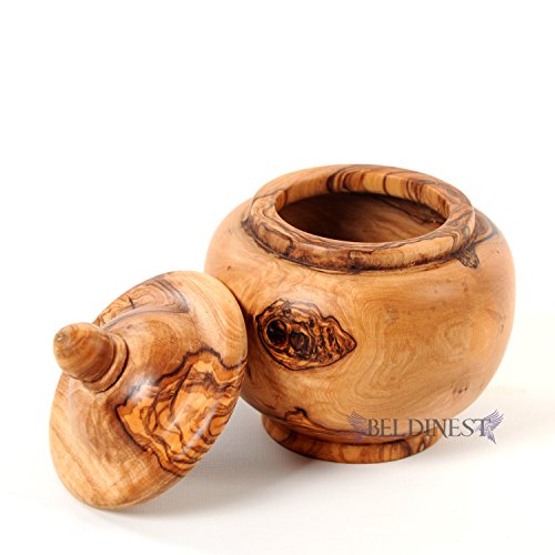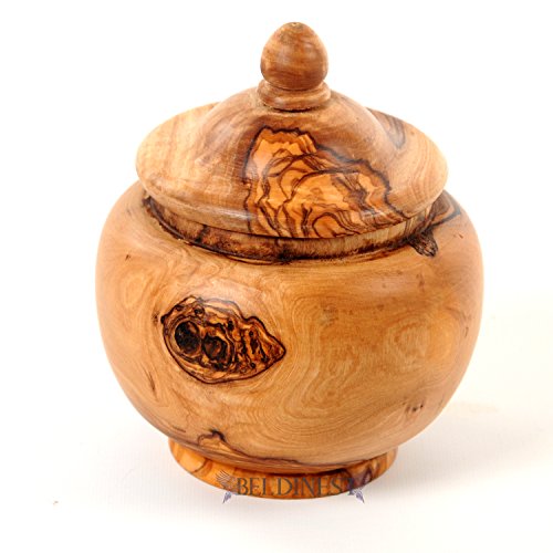Studio : BeldiNest Publisher : BeldiNest Product Description Wooden Medium Sugar Bowl Shaped Acorn Handcrafted From Olive Wood A truly unique handcrafted olive wood acorn shape medium sugar jar. These beautiful pieces are made from a solid piece of durable and dense older trees that no longer produce fruits. A beautiful unique grains in each item that has been aged and treated with olive oil. The olive wood canisters are never made using bleach, dyes or chemicals. You can use it as tea canister, sugar jar, coffee cellar or even as a gift... Please note: Due to each item being handcrafted, the grain on the olive wood might be slightly different; each item is a unique piece of art. Makes an Exquisite Gift! Features Sugar Bowl Shaped Acorn Medium Size Hand-carved Olive Wood Sugar Bowl In Tunisia by talented artisans Care: Light wipe with olive oil to restore the wood to its original luster Hand wash only: Do not put in the dishwasher Approx Diameter: High with lid: 4.5 inches ; Outer Diameter: 3.2 inches More Details Approx dimensions: Outer Diameter: 3.2 inches Inner Diameter: 2 High with lid: 4.5 inches Depth: 2.5 inches Approx Weight: 10 oz Capacity: 3/4 cup 0
