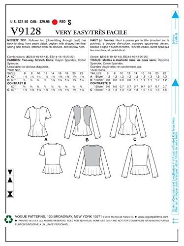 Vogue Patterns V9128 Misses' Top, Size A5 (6-8-10-12-14)