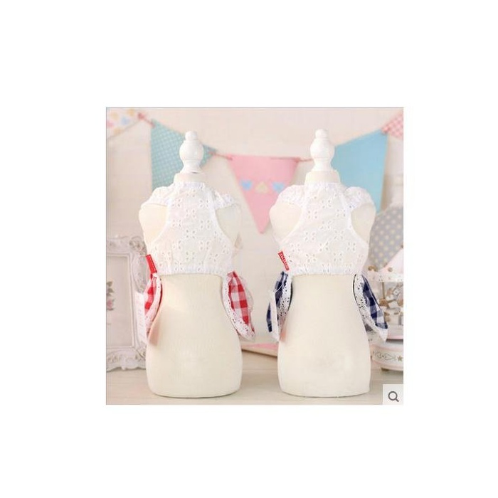 견복 원피스 깅엄체크 레이스 상쾌한 청색계 견패션 애완동물 용품
