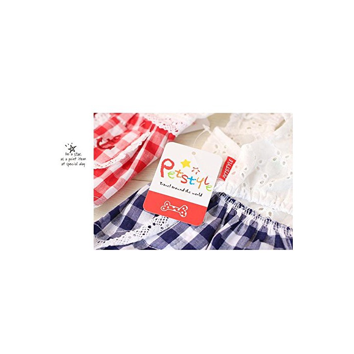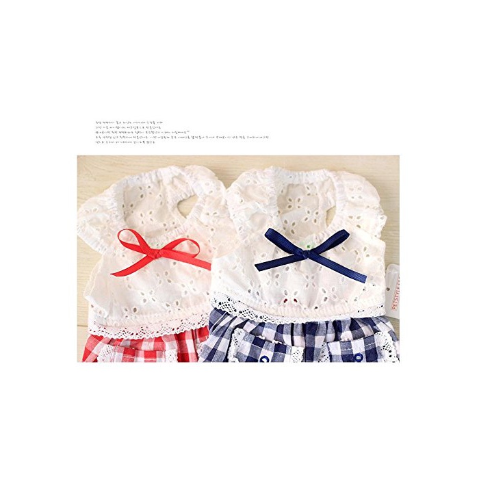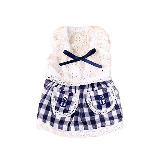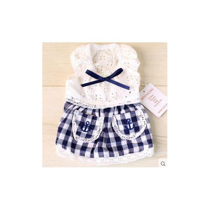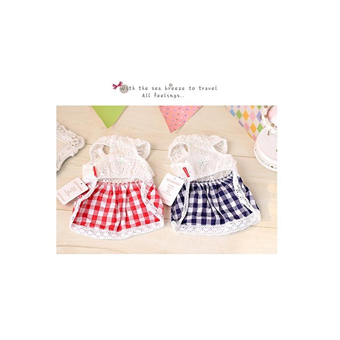 PrettyPappy 견복 원피스 깅엄체크 레이스 상쾌한 청색계 견패션 애완동물 용품