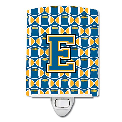 Caroline's Treasures Letter E Football Blue and Gold Ceramic Night Light, 6 x 4", Multicolor