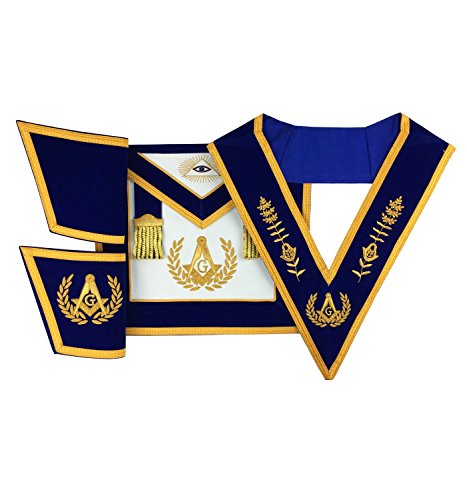 -. Title : MasonicマスターMasonエプロンセットエプロン、襟ガントレットハンドメイド刺繍ブルー