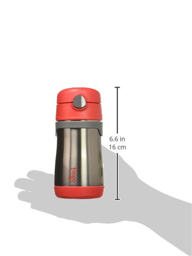 THERMOS FOOGO Vacuum Insulated Stainless Steel 10-Ounce Straw Bottle, Red/Grey
