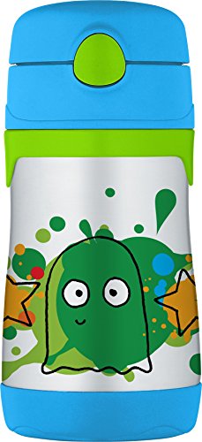 THERMOS FOOGO Vacuum Insulated Stainless Steel 10-Ounce Straw Bottle, Wacky Faces