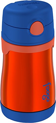 THERMOS FOOGO Vacuum Insulated Stainless Steel 10-Ounce Straw Bottle, Orange/ Blue