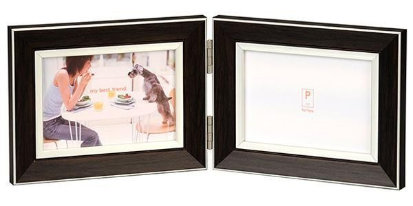 落ち着きのある木目調とシルバーラインが印象的なフォトフレームです。