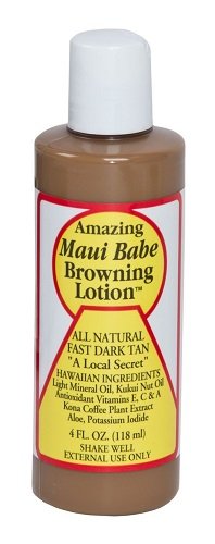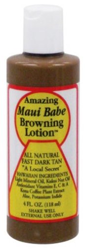 This tanning lotion is golden glow in a bottle! For a fast and evenly applied tan, make sure to add Maui Babe's Browning Lotion to your suncare routine. Ultra-moisturizing and water-resistant, this skin-loving product will definitely be among your favorites for the beach and pool season. Ingredients: Light Mineral Oil, Kukui Nut Oil, Antioxidant Vitamins E, C & A, Kona Coffee Plant Extract, Aloe, Potassium Iodide. Made in Maui, Hawaii.Feature