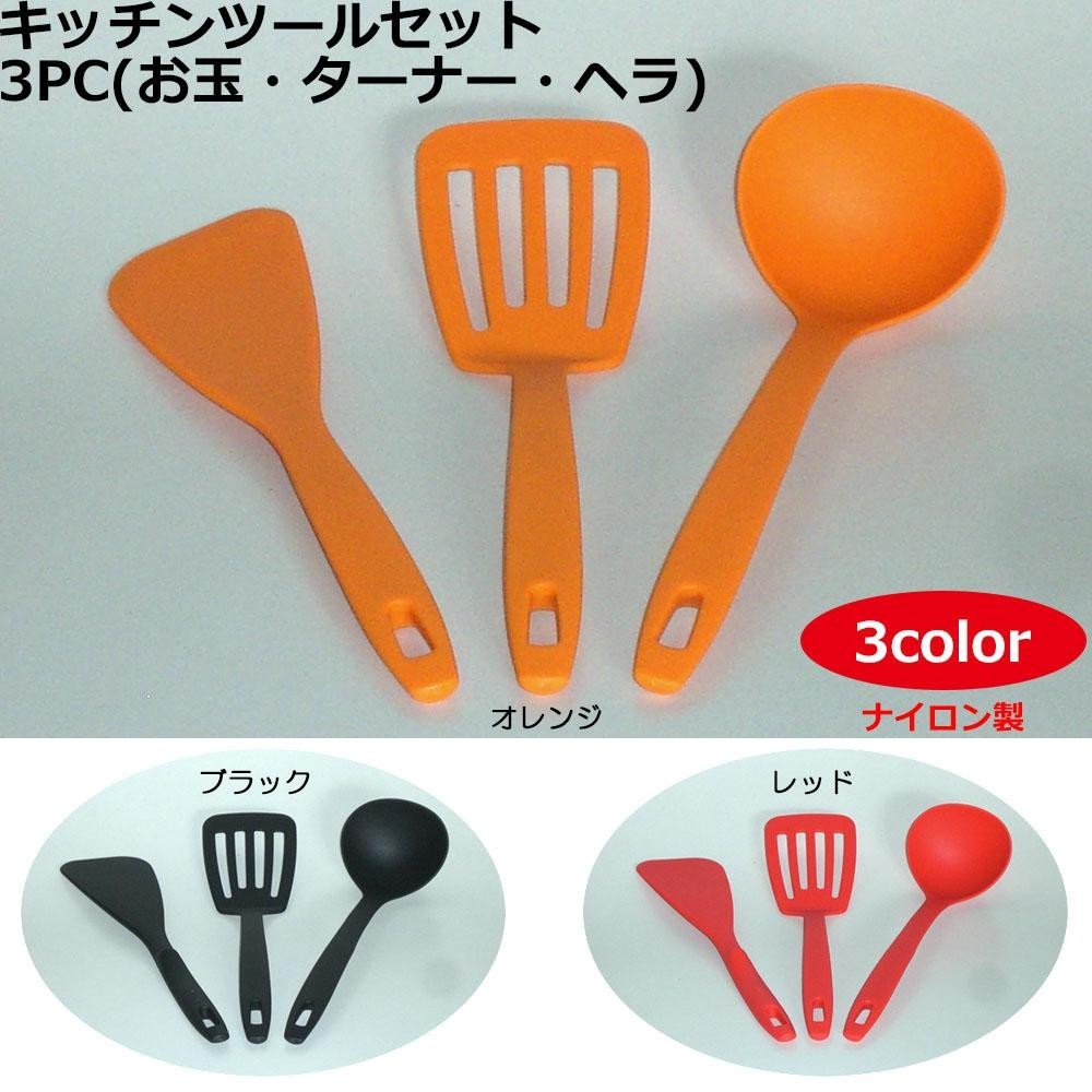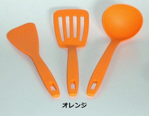 おたま・ターナー・ヘラの3点セットです。耐熱温度210度!!食洗機で洗えます。 製造国:日本 素材・材質:66ナイロン 仕様:【サイズ】おたま:90×285×75mmターナー:80×310×50mmヘラ:70×310×20mm【耐熱温度】210度【食洗機】可 セット内容:おたまターナーヘラ ※サプライヤー直送品  ご注文後3~4営業日後の出荷となります【商品名】食洗機対応! キッチンツールセット 3PC(お玉・ターナー・ヘラ) オレンジ・KT-3OR