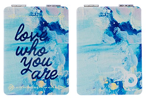 Bops Double Sided Compact Mirror – “Love Who You Are” - 2xMagnification + Standard Mirror, Pocket-Size, Perfect for Purse and Travel + Artistic & Inspirational