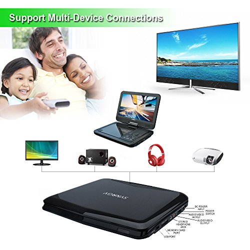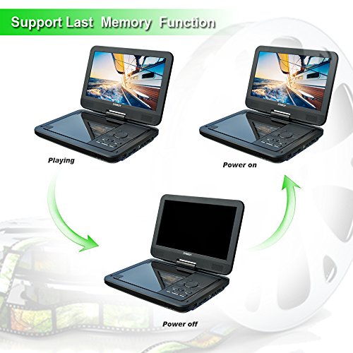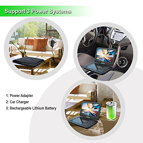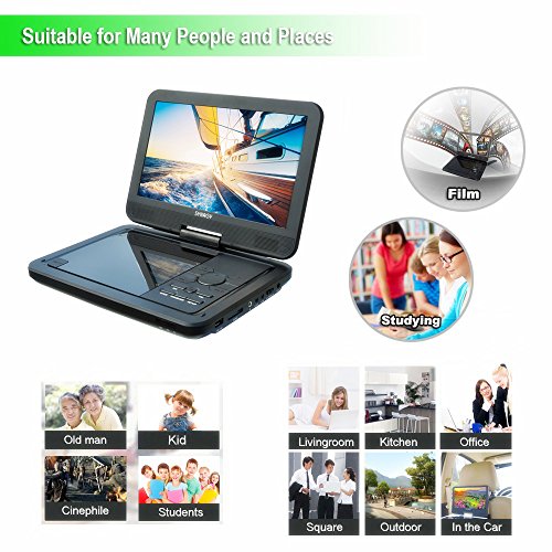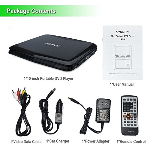 SYNAGY 10.1" Portable DVD Player CD Player with Swivel Screen, Rechargeable Battery, USB/SD Card Reader, AC/DC Adapter (Black)