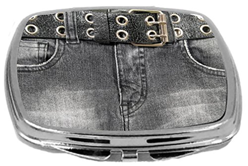 Rikki Knight Old Denim Black Jeans Design with Leather Belt Design Compact Mirror, 17 Ounce