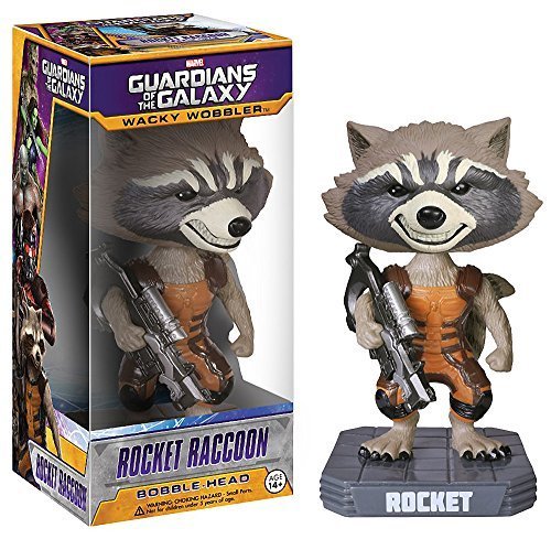 -. Binding : Toy -. Brand : Guardians of the Galaxy -. Feature : Rocket Raccoon Bobble Head Figure: Guardians of the Galaxy x Wacky Wobblers Series -. Label : Funko -. Manufacturer : Funko -. MPN : 9682547 -. PackageQuantity : 1 -. PartNumber : 9682547 -. ProductGroup : Toy -. ProductTypeName : TOYS_AND_GAMES -. Publisher : Funko -. Studio : Funko -. Title : Rocket Raccoon Bobble Head Figure: Guardians of the Galaxy x Wacky Wobblers Series by Guardians of the Galaxy