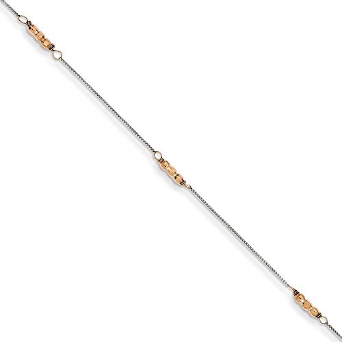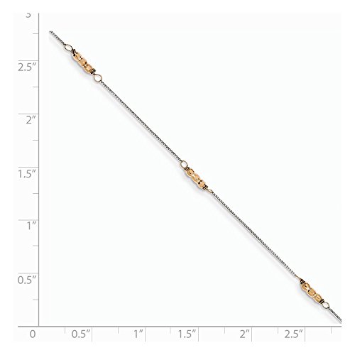14K Two-Tone Mirror Beaded Anklet. Material: Primary - Purity:14K|Finish:Polished|Chain Length:9 in|Chain Type:Ball (Beaded)|Chain Width:2 mm|Clasp /Connector:Spring Ring|Feature:Adjustable|Manufacturing Process:Machine Made|Material: Primary:Gold|Product Type:Jewelry|Jewelry Type:Anklets|Sold By Unit:Each|Anklet Type:Anklets with Stations|Texture:Diamond-cut|Material: Primary - Color:Two-Tone|Feature 2:SolidFeature
