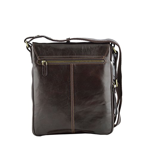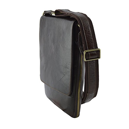 Product Description Genuine Leather Crossbody Man Bag - Jaime 100% genuine Italian Leather man bag. Linear design, very practical and modern, perfect for those who wish to carry the essential with them. Outside - 100% genuine Italian leather - main compartment with flap and zip closure - back pocket with zip closure - adjustable leather and fabric shoulder strap - metal details Inside - synthetic fabric lining - suede flap interior - pockets under the flap - inner pocket with zip closure External Dimensions 23 x 2 x 27 cm Weight 0.9 Kg 0