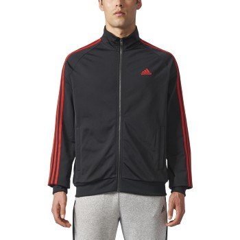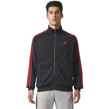 adidas Men's Athletics Essential Tricot 3 Stripe Track Top, Black/Scarlet, Medium