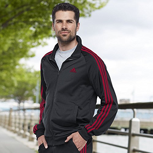 adidas Men's Athletics Essential Tricot 3 Stripe Track Top, Black/Scarlet, Large