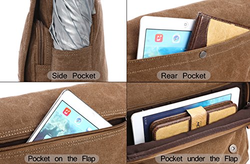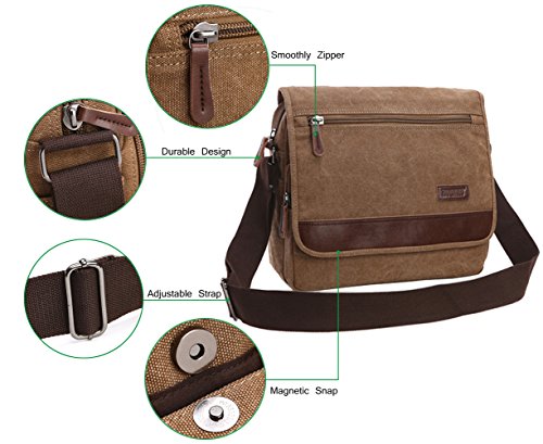 -. Feature : DESIGNED TO LAST A LIFETIME: This crossbody bag is precisely made to serve you for years thanks to the high quality canvas material used to make it. It will take everything that¡¯s thrown its way and still look as good as new. It also features a genuine leather decoration on the top flap. / BEAUTIFULLY ADDS TO YOUR STYLE: The canvas & leather combination of our messenger bag gives it a nice retro look and feel that you are going to love. It is perfect for working, travelling, hiking, or even for daily use. It will surely go well with any outfit in your wardrobe. / FITS ALL YOUR ITEMS WITH EASE: AIBAG's messenger bags for men measure 35cm x 30cm x 12cm. They have multiple compartments that make it amazingly multifunctional. They are spacious enough to fit a 14" laptop and still have enough space for your notebooks, work documents, smartphone, and more. / BUILD FOR CONVENIENCE: We made sure to add a few features that increase the convenience you get from this canvas messenger bag: the buckles of the top flap feature a magnetic snap design for easy opening and closing, and the shoulder straps are adjustable between 75-150 cm to fit different heights and body types. A wide strap(5cm) ensures minimal pressure to your shoulders. / INCLUDES A FREE SLIM WALLET FOR MEN: Every leather messenger bag comes with a FREE BONUS slim leather wallet. It is perfect for keeping your cards and cash safe. A perfect gift idea for a boyfriend, husband, fiancé, father, or son. Get him one. Click 'Add to Cart' now!