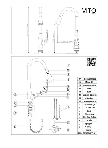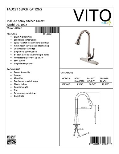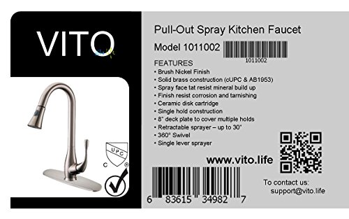 VITO x4s pull-out spray kitchen faucet with 8" deck plate brushed nickel finish
