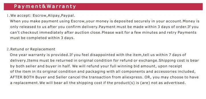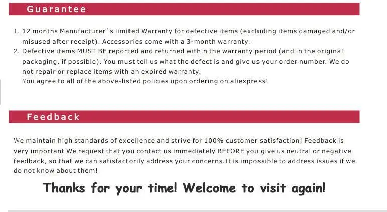 4. weはご質問を解決で48時間場合どのような品質問題や配送問題、前にお問い合わせください任意の紛争またはnegetiveフィードバック。