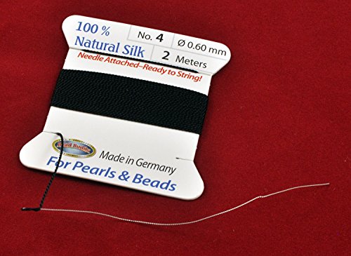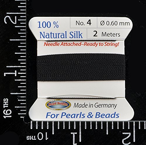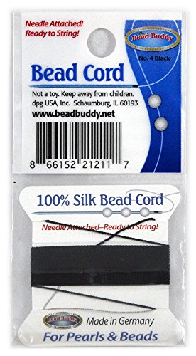 Bead Buddy 0.6 mm Black Silk Cord Thread With Attached Needle For Jewelry Making, 2m long