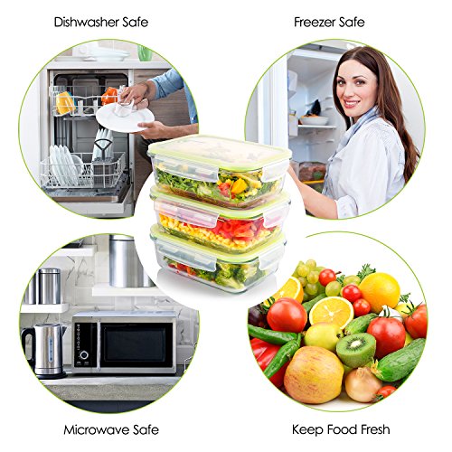 ☆ Portion Control & Convenient: 1 Compartment GLASS containers that each hold 36 ounces food for daily meals and health diet. Convenient use them for your staple food, sandwich, fruits, vegetables or other food anywhere you go.